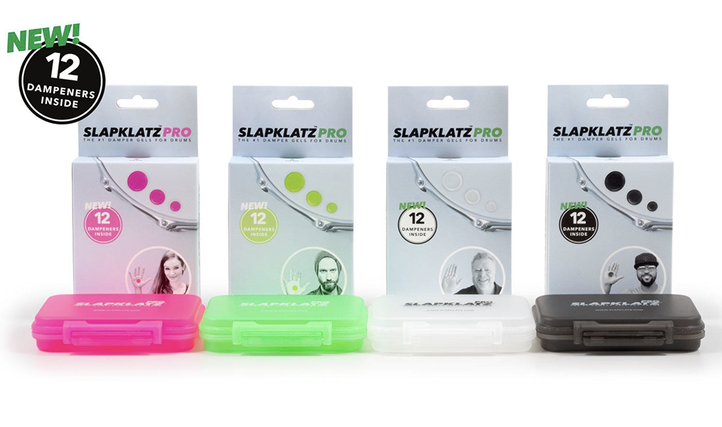 With the NEW MINI Pack” you get the same high quality drum dampeners as the renowned “Pro Pack” only at a lower price point. With 6 gels, a new slimline container, handy for storing in stick bag pockets, as well as a choice of 4 colours, this is a great new addition to the SlapKlatz family. (See image below).