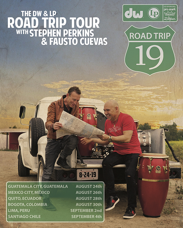 Drum Workshop Inc. (DW) and Latin Percussion (LP) are delighted to announce the “DW & LP Road Trip Tour” across Central and South America this summer. The shows will feature Fausto Cuevas and Stephen Perkins who will each give solo performances before coming together to close the show with a dynamic drumming duet. The tour is additionally sponsored by Zildjian, Remo and Pro-Mark.
