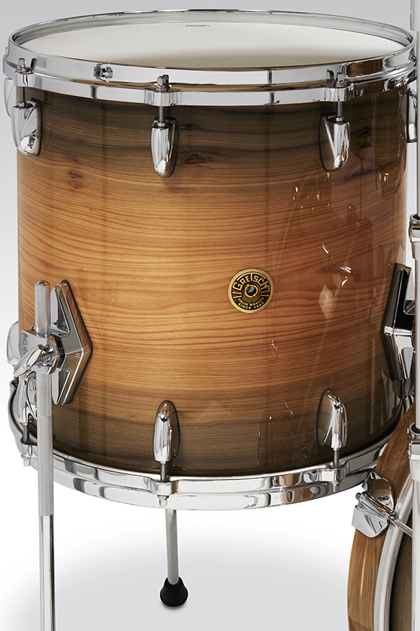 Each time-honored hybrid maple/gum shell is finished with a veneer from wood that is estimated to have been submerged for 60-150 years at the bottom of the Pee Dee River Basin in South Carolina, (near the historic Smiths Sawmill), located 120 miles from the Gretsch Factory.  The slow-growing, indigenous species benefits from the minerals in the river, giving it a beautiful gray patina.  Each drum’s exterior is hand-sprayed with clear nitro-cellulose gloss lacquer, while the interior is treated with Gretsch’s exclusive Silver Sealer.
