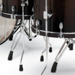 Its visually striking satin wood counter hoops, secured with vintage-style hoop clips combined with 30-degree bearing edges offer a punchy, focused sound. The mounting hardware includes a “gas cap” bass drum mount plate and a direct-to-shell mount on the rack tom.