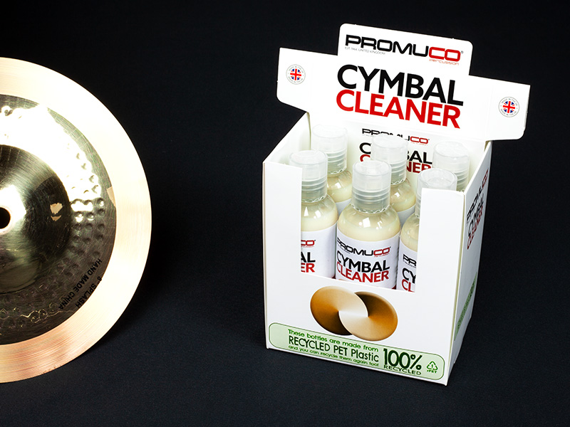 As part of Promuco’s commitment to reducing their environmental impact in a practical and sustainable way, Promuco Cymbal Cleaner is bottled in 100% recycled post-consumer PET plastic bottles with labels and associated packaging printed on recycled paper stock and produced in a carbon balanced factory using carbon balanced materials.