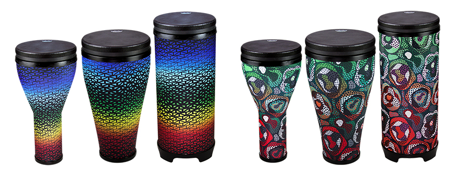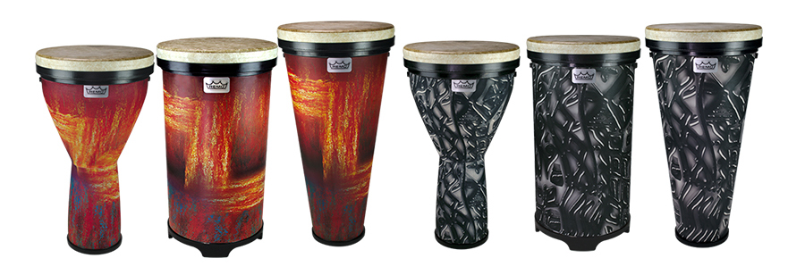 Remo’s Versa Drum Combo Packs include a Versa-Series Djembe, Timbau and Tubano all featuring Remo’s Taper-Fit Drum Coupling System drumheads that are removable and interchangeable to give them the option of being played as frame drums for optimum sound quality.