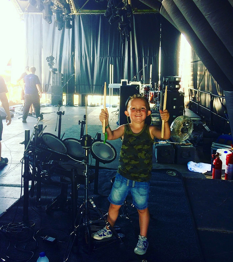 In 2019, Caleb played his first live music festival at just 4 years old. He opened the festival’s main stage performing some well known rock classics.