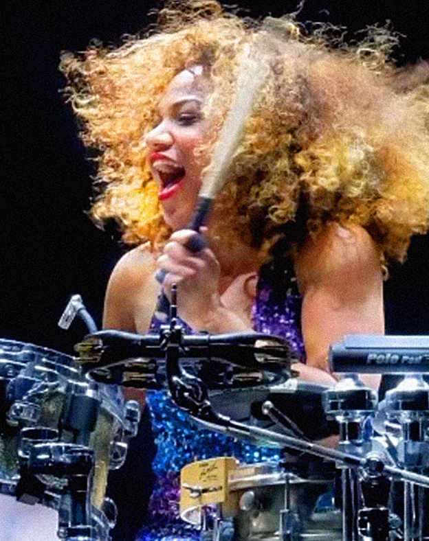 Cherisse Osei’s visual flamboyance and rock-solid drumming make her one of the most sought-after drummers in the world. Working with innovative, upcoming artists and industry legends including Kelly Jones, Paloma Faith, Bryan Ferry and Mika, she’s been playing to sell-out arenas and global audiences for nearly 2 decades and currently tours and records with Simple Minds.