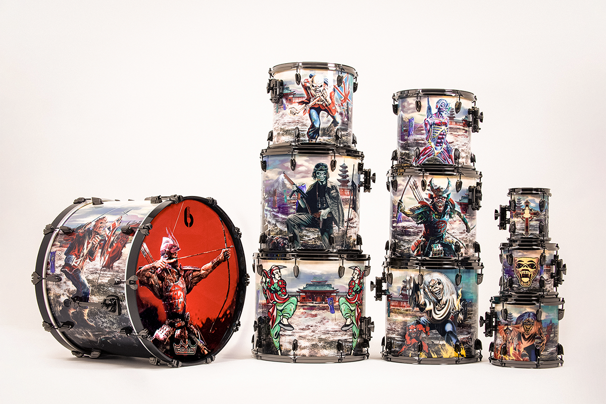 Inspired by Iron Maiden’s latest album artwork, each tom features an Eddie from one of their iconic albums, including the latest Samurai Eddie.